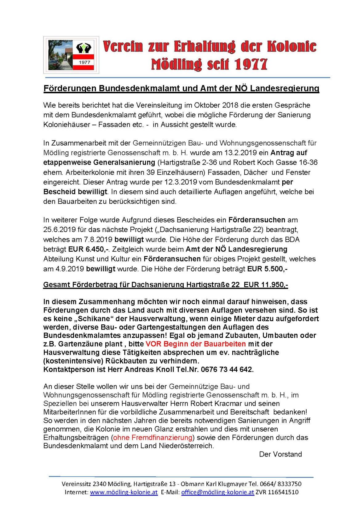 Sanierung der Kolonie Förderungen Bundesdenkmalamt - Land NÖ