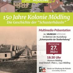 Vom 27. März 2025 bis 6. Jänner 2026 durften wir ihm Rahmen der Feierlichkeiten "150 Jahre Stadt Mödling "die Sonderausstellung mit dem Thema "150 Jahre Kolonie Mödling - Die Geschichte der Schusterhäusln" im Stadtmuseum Mödling einrichten. Für all jene, welche die Ausstellung nicht besuchen konnten, hier die Schautafeln die ausgestellt waren....