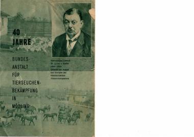 1950 wurde eine Informationsbroschüre 40 Jahre Bundesanstalt für Tierseuchenbekämpfung in Mödling herausgegeben. Aus dem Original, welches sich im Vereinsarchiv befindet, wurde eine Pdf Datei generiert, welche wir hier zur Verfügung stellen.