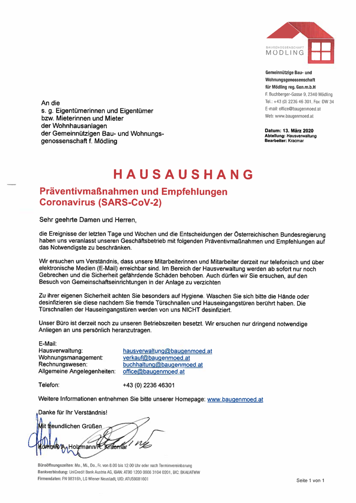 Da das Dach undicht wurde und an den 70 Jahre alten Holztüren der Zahn der Zeit nagte, war die Sanierung des Badehauses notwendig geworden. Im Auftrag der Hausverwaltung wurde im April 2025 das Dach neu eingedeckt. Die Montage der Türen erfolgte am 25.11.2025 von der HTL Mödling durch den Lehrer Zimmermeister Markus Prax sowie 7 Schüler und Schülerinnen der 2.Klasse Fachschule – Bautechnik......