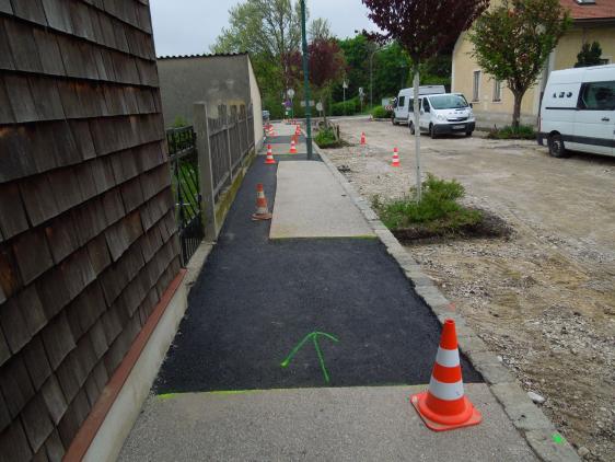 Obmann Karl Klugmayer hat nach 1 Stunde Intervention auf der Gemeinde erreicht, dass die Arbeiten so ausgeführt werden dass die gesamte Gehsteigbreite saniert wird.