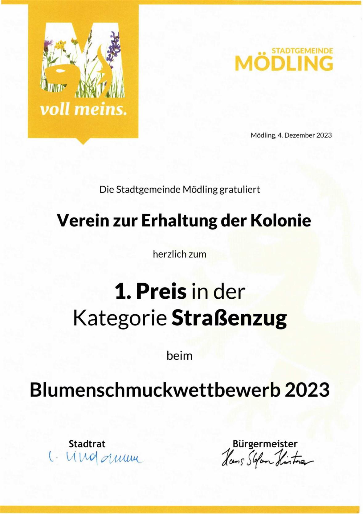 Prämierung Blumenschmuck-Wettbewerb Gemeinde Mödling 2023